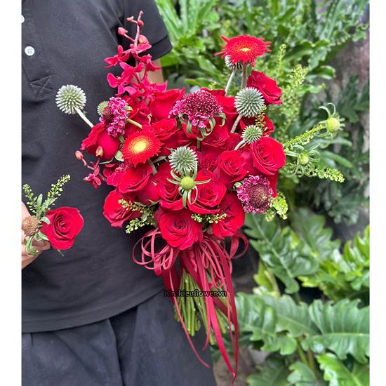 Bó hoa cưới tone đỏ – HC111